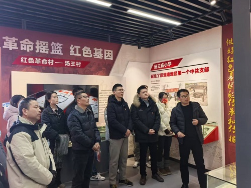 活动中,大家首先参观了汤王村村史馆,详细了解当地的风土人情及近年来乡村振兴发展成就;随后,走进淮南市爱国主义教育基地——汤王村王影怀烈士陵园,瞻仰烈士墓,认真学习红色事迹,体悟先烈们坚定的理想信念和无私奉献精神;深入廉洁文化馆,聆听廉洁故事,增强廉洁意识。参观学习后,学院领导班子成员专程走访慰问了汤王村两户老党员,为他们送上祝福和慰问品;参加活动的党员还走村入户开展反电诈宣传活动,发放宣传材料100余份,为守护好老百姓的“钱袋子”提供力所能及的帮助。
