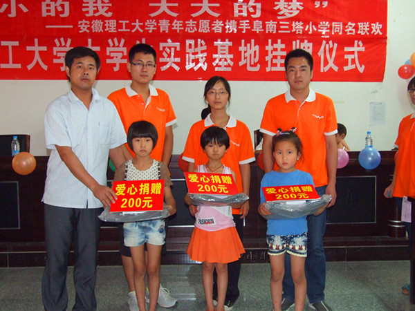 在繁忙有序的支教活动之余,志愿者们还开展了多项志愿服务活动,为当地带去一片温暖和感动的同时,也提高了自身的社会实践能力。7月14日下午,十余名青年志愿者冒着炎炎烈日,前往三塔镇敬老院开展爱心服务。7月16日上午,11名大学生骨干与阜南三塔镇6名村官在当地镇政府会议室开展了以“走基层,话基层”为主题的座谈会,当天下午,十余名青年志愿者前往当地父母离异的留守女童张永春小朋友的家中,帮她度过了一个别样的生日。7月19日,台湾AV影片 十余名志愿者和阜南三塔小学的五十多名孩子共同举办了“小小的我,大大的梦”主题文艺汇演,台湾AV影片 又一大学生社会实践基地挂牌仪式在阜南县三塔镇三塔小学顺利举行。7月20日上午,志愿者们分别就留守儿童幸福感和农民收入问题进行了问卷调查,当天下午, 11名志愿者在魏建徽老师的带领下走进了阜南三塔镇的空巢老人刘大爷的家中,对其进行慰问。