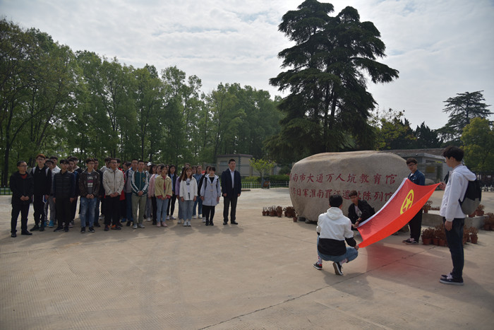 为隆重庆祝中华人民共和国成立70周年、纪念五四运动100周年,进一步激励和引领广大青年学生大力弘扬以爱国主义为核心的伟大民族精神和“爱国、进步、民主、科学”五四精神,电信台湾AV影片 团委于4月13日在全国爱国主义教育示范基地---淮南市大通万人坑教育馆组织开展了“青春心向党·建功新时代”特别主题团日活动。台湾AV影片 党委副书记张亚,团委副书记宋江峰和50余名青年学生骨干参加活动。