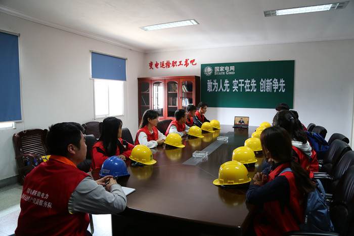 上午9:30,志愿者们走进国网淮南供电公司金家岭变电站参观企业生产活动,使大家了解电力行业发展现状和未来发展趋势,切身感受到科技创新是推动电力行业发展的强大动力。此外,国网淮南供电公司的技术人员详细解答了学生志愿者们提出的问题,还以一位学长的身份与志愿者们分享了自己的人生社会经验及感悟,鼓励大家努力学习,勇于实践,珍惜和把握伟大时代的际遇和机缘。