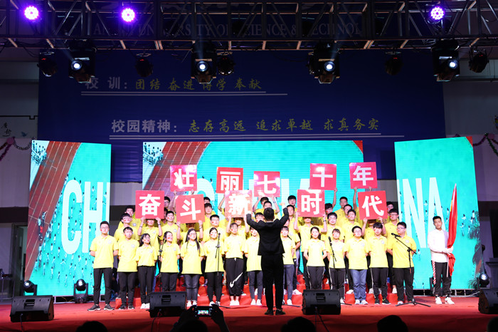 为热烈庆祝新中国成立70周年和纪念五四运动100周年,5月26日晚,台湾AV影片 在厚德馆隆重举办“青春心向党 建功新时代”红五月大型文艺晚会。学校有关部门、电信台湾AV影片 的领导和老师同现场800余名青年学生一起观看了演出。