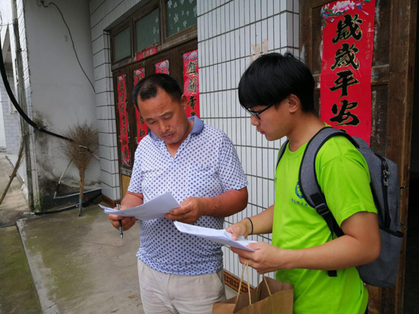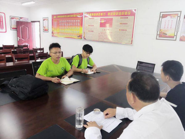 7月8日,实践团的第一站来到了古碑镇迎河村。队员们兵分两路,一队向村民们发放问卷和环保宣传单,另一队对迎河村主任进行了采访。在走访村民时队员们发现,村民家中农具摆放都十分有序,没有出现农具在门口乱摆乱放的情况。村主任向队员们介绍说:“迎河村有专门的承包公司对居民生活垃圾进行定时处理,同时聘用贫困户做保洁员,专门进行街道的打扫”。另外在采访中还了解到,迎河村厕所现在已经实现了一户一个,清除了原有的露天厕和旱厕,每户厕所都建设在院内,极大地优化了农村居住环境。采访结束时,村主任深情地说到:“美丽乡村不是靠一个人或是哪几个人,而是依靠大家的力量。”