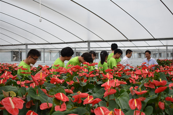 暑期社会实践志愿者们先后走访寿县三觉镇张墩村、张岗村等6个村庄13个产业扶贫项目。实地走访了解到,张墩村通过成立协会、专业合作社等多种形式,引导农村种植业、养殖业,逐步集中,扩大规模,探索出以“合作社+贫困村+订单帮扶+贫困户”的产业扶贫模式,带动贫困户增收。村支部书记梁书记说:2014年全村有171户480名贫困户,5年来通过产业带动将贫困人口缩减到15户30人。志愿者们参观了安徽博觉花卉种植有限公司,聆听张墩村张青年赴日本学习花卉种植技术回乡创业的励志故事。据悉,公司年产蝴蝶兰350万株,有机蔬菜150万公斤,实现年利税200余万元,新增工作岗位约360人,带动周边贫困群众增收。