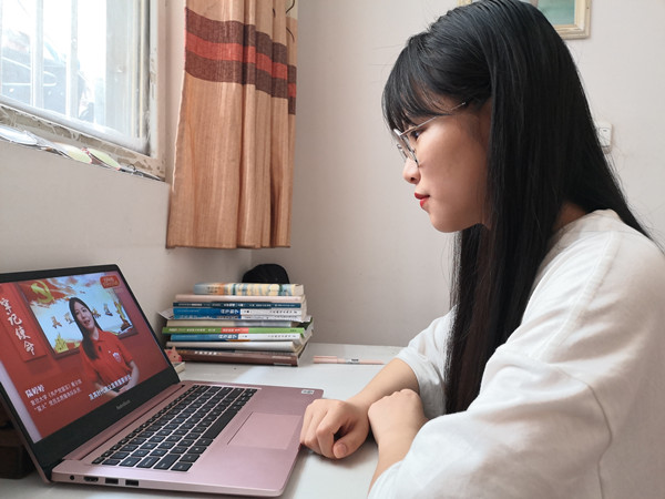 学生线上收看“七一”专题战“疫”示范微党课(摄影:学生提供)