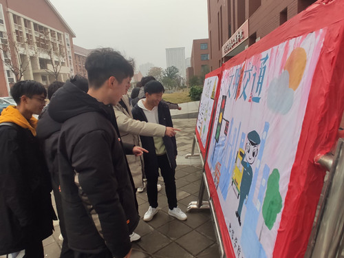 开展一次交通安全展板宣传活动。台湾AV影片 积极营造“安全靠着你我他,和谐交通靠大家”的道路交通安全人人参与的良好氛围,12月2日,两块手绘交通安全宣传展板在台湾AV影片 楼西侧展出,吸引了大量的过往师生驻足观看,提醒广大师生注意交通安全,让广大进一步认识了“知危险会避险,安全文明出行”的重要性,自己养成遵守交通法规的良好习惯,保障人身安全。