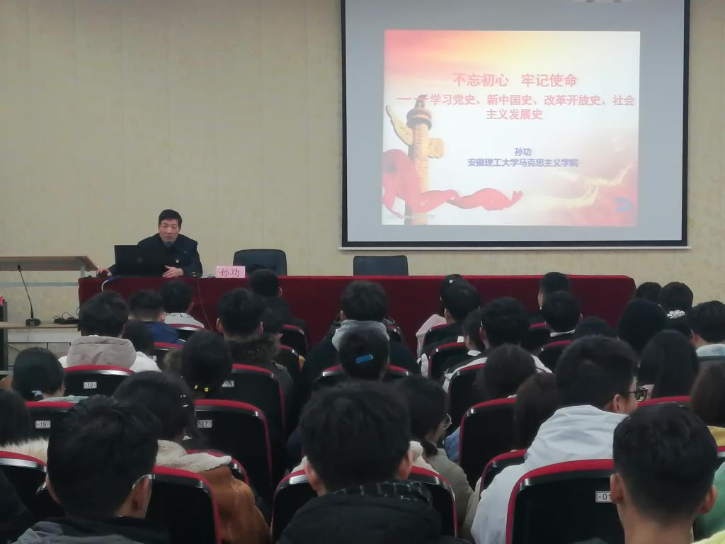 开班仪式结束后,马克思主义台湾AV影片 党总支书记、院长孙功教授为学员讲授《不忘初心牢记使命——学习党史、新中国史、改革开放史、社会主义发展史》专题内容。他从学习“四史”的重要性,“四史”的基本脉络、内在逻辑及根本经验四大方面,给学员们呈现一堂生动的团课,引导学员们立足当下,回望历史,汲取奋进力量。