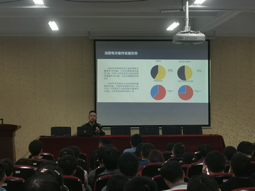 讲座中,王警官针对学生安全防范意识相对薄弱的现象,从电信网络诈骗的性质入手,结合近两年发生在高校学生身上的网络兼职刷单诈骗、冒充熟人及公检法诈骗等真实典型案例,为师生详细讲述了诈骗分子惯用的诈骗手段,并针对不同的诈骗形式向同学们具体讲解了防范措施,提醒师生们如何识别电信诈骗,避免上当。