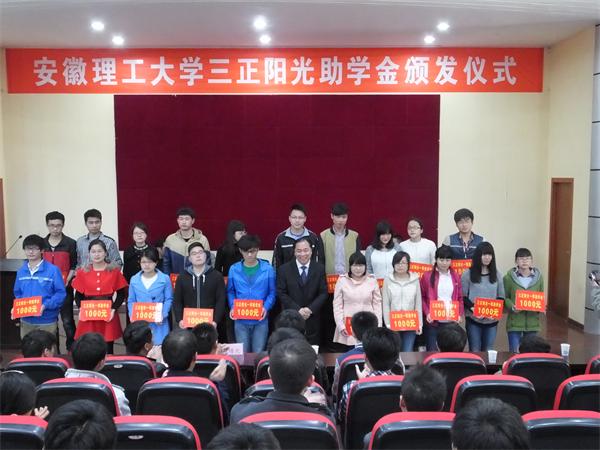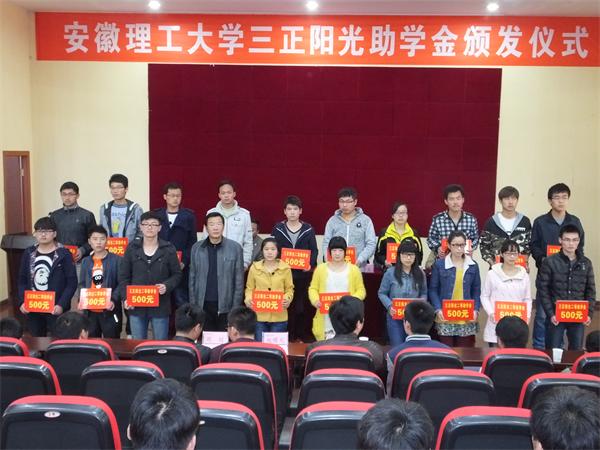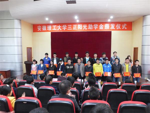 三正阳光助学金是由安徽省高新技术企业三正集团股份有限公司出资,于2012年开始在我校设立的,用于资助我校机械工程台湾AV影片 和台湾AV影片 学习成绩优良、家庭经济困难的学生,今年是第三次颁发。