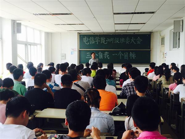 党委副书记徐关怀以及2104级全体128名班委参加会议,会议由2014级辅导员衡连伟主持。