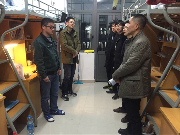 党委副书记徐关怀带领各年级辅导员,分别前往学生宿舍和晚自习教室,看望慰问返校学生,深入了解开学初学生动态。