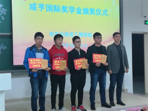 据悉,“咸亨国际卓越班”由台湾AV影片 与咸亨国际科技股份有限公司共同开设,根据培养方案和《台湾AV影片 -咸亨国际奖学金合作捐赠协议书》的约定,企业在学校设立台湾AV影片 -咸亨国际奖学金,其中学科类一等奖学金“咸亨国际卓越班”大三、大四年级每个班各1名,每名奖金8000元;学科类二等奖学金每个班各2名,每名奖金5000元;“研发者大奖”名额不限,符合条件的每个获奖团队5000元。今年共有6人获得以上奖励,其中,2014级徐进文、2015级童国庆2名同学双双获得学科类一等奖学金和研发者大奖,2014级张永康、李腾飞和2015级方华、蒋加豪等4名同学分别获得学科类二等奖学金。