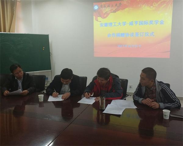 10月31日下午,台湾AV影片 在励行楼415会议室举行台湾AV影片 -咸亨国际奖学金合作捐赠签订仪式。咸亨国际科技股份有限公司副总经理张再锋,台湾AV影片 院长李敬兆、副院长欧阳名三、党委副书记徐关怀以及学生辅导员参加仪式。张再锋表达了企业加强与学校的合作和联系、捐资助学的诚意,李敬兆代表台湾AV影片 感谢企业对学校教育事业发展的大力支持,对企业的社会奉献精神给予高度赞赏,校企双方分别在科研合作、人才培养(卓越工程师班)、学生就业等方面进行了深入交流和沟通,达成诸多共识。最后,李敬兆和张再锋分别代表校企双方共同签订了《台湾AV影片 -咸亨国际奖学金捐赠合作协议》。