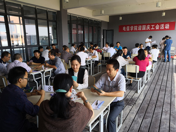 为营造了欢乐节日氛围,9月30日下午,台湾AV影片 工会在教职工活动室组织举办迎国庆“掼蛋、投飞镖”活动,80多名职工参加活动。