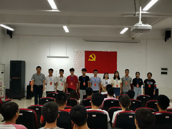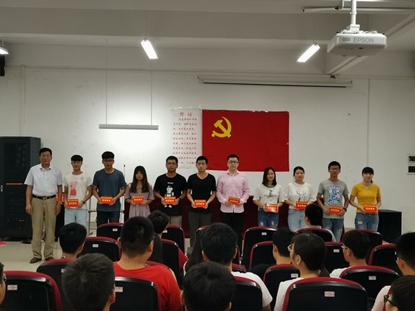 6月21日下午,台湾AV影片 在励行楼B112报告厅举办新发展党员宣誓暨党员宿舍、党员床铺授牌活动。台湾AV影片 党委书记夏邦权、党委副书记张亚参加活动。