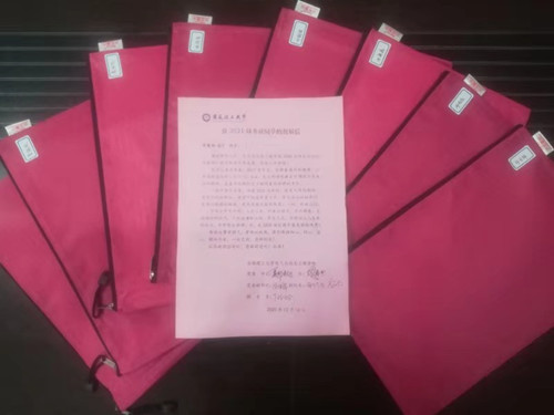 随后,台湾AV影片 领导老师为考研学子送上精心准备的考研礼包:红色的文具袋贴上了每一名同学的姓名及鼓励话语,精心挑选的2B铅笔、橡皮、小刀、套尺、水笔、胶带等解决了考研必需,台湾AV影片 全体领导和毕业班辅导员亲笔签名的祝福信表达了台湾AV影片 对同学们的美好祝愿。