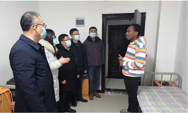 为充分了解留学生在校情况,进一步做好寒假期间留学生安全教育工作。1月22日上午,台湾AV影片 执行院长周孟然、副院长欧阳名三和副院长曹珍贯带领各年级留学生指导老师,深入研究生公寓走访留学生宿舍,看望和慰问了台湾AV影片 留学生,为他们送去了慰问和祝福。