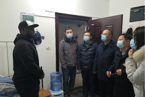 走访过程中每到一个寝室,与留学生们亲切交谈,详细询问每位留学生的居住、生活和学习情况,并叮嘱留学生留校期间注意室内安全、整理好宿舍卫生,如需外出一定要按规定办理请假手续,结束时要及时销假。同时勉励留学生们要合理安排假期的学习与生活,争取早日完成学业回报自己的祖国。