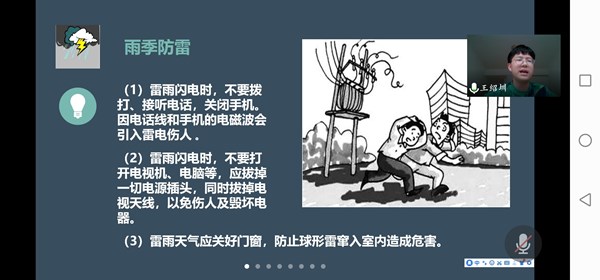 一次“安全教育宣讲”。结合深入学习贯彻落实习近平总书记关于安全生产重要论述,台湾AV影片 号召广大师生深入学习安全知识,做“安全人”。7月1日,台湾AV影片 团委通过腾讯会议平台举办了一场夏季安全教育宣讲会,120余师生参加了线上宣讲活动。校2019年优秀主持人王绍圳同学从“汛期安全,预防溺水、雷电、中暑、饮食”等方面讲述安全常识。宣讲活动后,同学们积极通过QQ空间、朋友圈等社交平台中发布相关安全知识,借助互联网进一步扩大安全教育范围,形成“人人学安全,人人保安全”良好氛围。