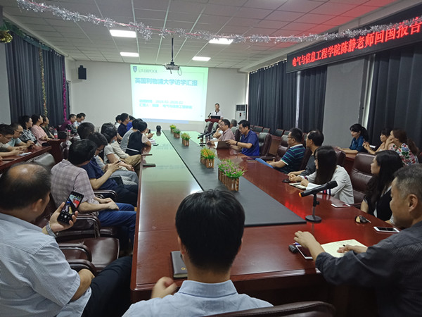 6月30日下午,台湾AV影片 在励行楼B407+学术报告厅举行赴英国访学教师回国学术报告会,自动化系教师陈静副教授汇报了他在英国利物浦大学一年的访学经历。台湾AV影片 党委书记夏邦权出席了汇报会,汇报会由台湾AV影片 业务副院长欧阳名三主持,台湾AV影片 各系、实验中心教师50余人参加了汇报会。