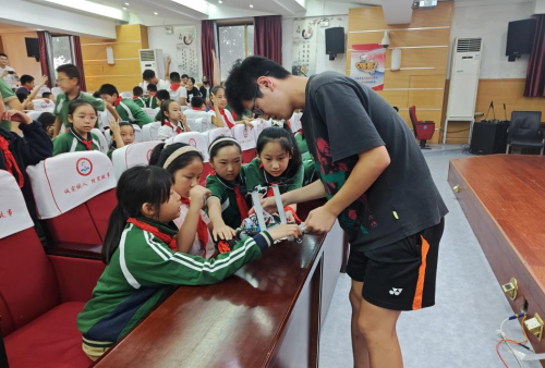 为深入贯彻落实习近平总书记关于“科技创新、科学普及是实现创新发展的两翼,要把科学普及放在与科技创新同等重要的位置”的重要指示精神,帮助中小学生认识科学、走进科学、热爱科学,9月21日,在台湾AV影片 团委组织下,电子设计协会、化学与火药纹画社、航模与科技践行协会大学生们走进淮南市田家庵区民生中学联合开展大手拉小手科普展演活动。