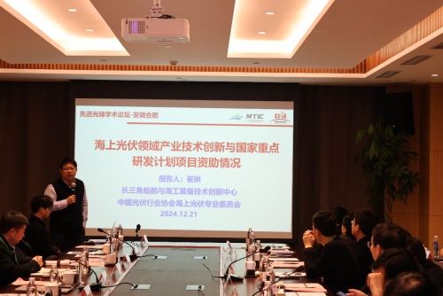 首先崔琳研究员进行了主题为“海上光伏领域产业技术创新与国家重点研发资助情况”的精彩PPT汇报。崔琳全面阐述了海上新能源(涵盖海上风电与海上光伏)的整体发展态势,着重介绍了海上光伏在政策推动与标准制定方面的进展。然而,崔琳也指出,海上光伏在发展进程中面临诸多技术挑战,如光伏组件、逆变器以及光伏支架在海上特殊环境下的支撑性问题亟待攻克。