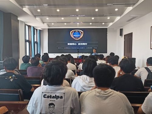 为进一步增强师生安全防范意识,有效预防电信网络诈骗,6月11日,电信与信息工程台湾AV影片 联合春晓街派出所开展“青春同心 反诈同行”主题实践活动,台湾AV影片 低年级辅导员及40余名学生参加活动。