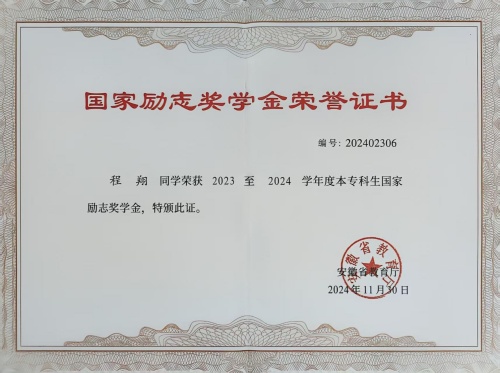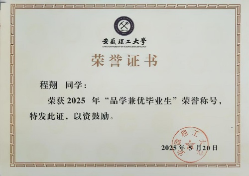 四年如一日的不懈努力,最终化为优异的学业成果,在校期间,多次获校级优秀学生奖学金和“三好学生”荣誉称号,获校“创新、创意、创业”大赛及“互联网+”大赛三等奖,大三获国家励志奖学金并成为了一名光荣的中国共产党员,大四成功考取合肥工业大学电气工程专业硕士研究生。毕业时,凭借四年优异表现,获评校“品学兼优毕业生”。