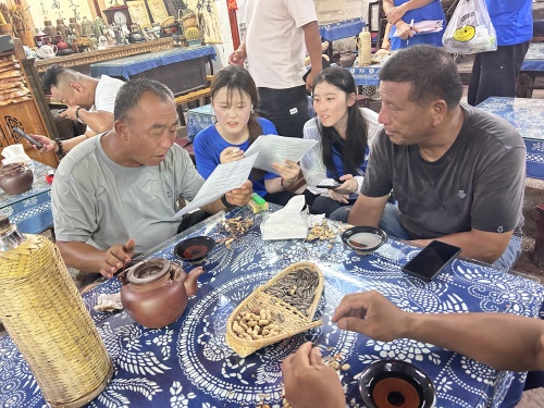 茶香氤氲体悟调解智慧。步入氤氲茶气的临涣茶楼,队员们沉浸式感受“以茶为媒”的调解氛围。围绕独具地方智慧的“一杯茶调解法”,队员们精心设计并发放主题调查问卷,在茶客与居民中细心收集对调解文化传承现状的认知与思考,触摸调解艺术深厚的民间根基。