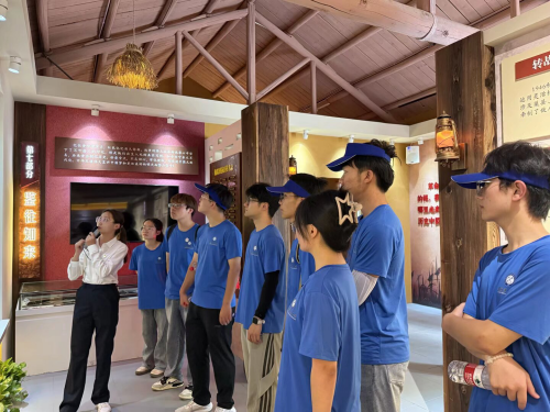 石头部落淬红心,旧址访民砺新程。7月5日,实践团走进仙踪镇六衖石头部落,在苍松翠柏掩映的黄山游击队旧址接受精神洗礼。这座“红色心脏”见证了含山第一支抗日武装的诞生。在讲解员引领下,队员们凝视斑驳枪械、泛黄地图,聆听游击队依靠群众、浴血奋战的事迹。参观结束后,队员们分头深入村落走访调研。探访中,一位九十岁高龄的老人感慨道:“当地环境显著改善,游客日益增多,生活越来越好。”“共产党好!”老人家发自肺腑地话变迁、真情感党恩,深深感染每一位实践队员。