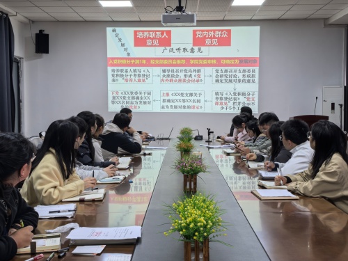 会议强调,各党支部要进一步提高政治站位,加强发展党员工作的计划性;按照党章规定和学校发展党员工作的总要求,始终把政治标准放在首位,坚持优中选优,确保把优秀大学生发展入党;执行过程中,要严格按照规章等党内法规制度办事,做到程序完善、手续完备、材料齐全,高质量完成年度发展党员工作。