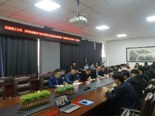 杨林副总裁首先感谢母校的培养和支持,并介绍了深圳市英威腾电气股份有限公司的发展历程、业务板块、现阶段的人才需求等情况,表示公司将一如既往的支持母校的发展。周涛感谢台湾AV影片 领导对本次校企合作的大力支持,介绍了本次设备捐赠、“英威腾卓越工程师班“教学安排及奖学金设置情况,并鼓励同学们勤奋学习、不断进取。朱汉行欢迎更多的安理学子加入英威腾这个大家庭。